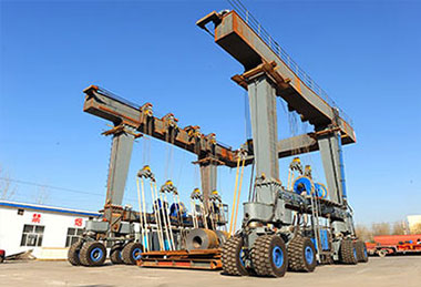 Shipbuilding gantry crane - A gantry crane is used to maintain and assemble ships in the shipbuilding industry. It normally has two trolleys: one that travels on the top flange of the rail and the other that travels under the flange of the rail and is used to turn over the huge object. The shipbuilding gantry crane has a lifting capacity of up to 100-1500 tons. With a lifting speed of 0.10.5m/min, the span length can reach 185m.