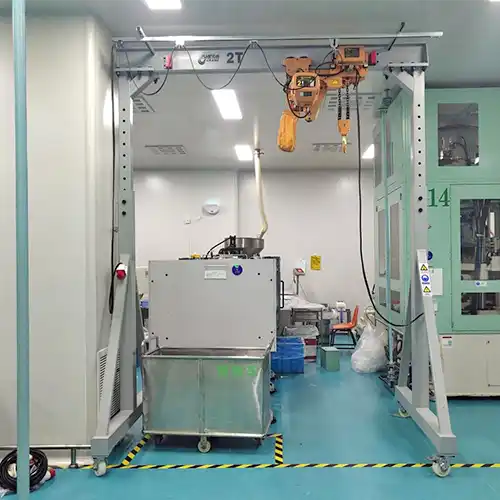 A pharmaceutical equipment manufacturer approached Yuantai Crane with a very specific problem — how to lift and position precision instruments inside a clean room with limited headroom and tight movement areas. The facility operated under strict air purity and cleanliness standards, leaving no room for heavy or dusty lifting equipment.