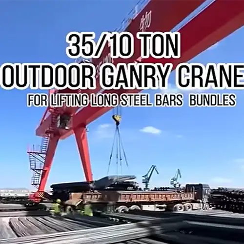 35 Ton/10 Ton gantry crane for steel rebar storage. Dual hooks outdoor cranes, safe lifting make rebar handling efficient in outdoor storage yards.