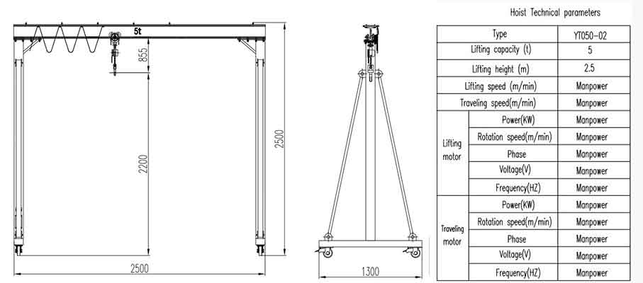 Portable gantry crane 5 ton for sale. Castor mounted small gantry, non-rail gantry crane design for light loads hoisting. Check 5 ton portable crane for Canada. .