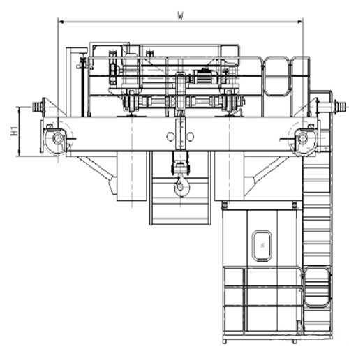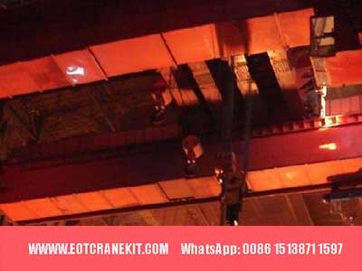 The structure of main girder is steel plate constructed box shaped girder. It has a thermal insulation device installed on the bottom of the main girder. The main girder cross section is analyzed and calculated systematically using the finite element calculation method, which ensures the cross section has sufficient strength, rigidity, and stability of the complete overhead crane. What's more, the overhead crane traveling mechanism and electronic equipment are set up reasonably on the walking board to ensure the operator's convenience.