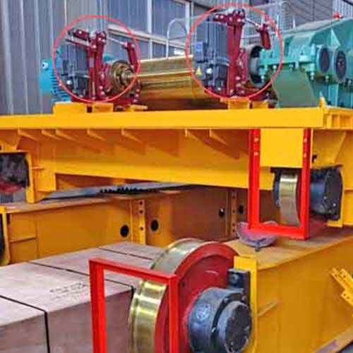 Double brakes on crane trolley main hook & auxiliary hook lifting systems