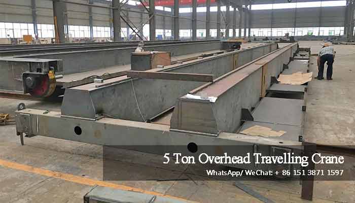 Main girder of the overhead crane is cut into two sections for the sake of shipping by containers.