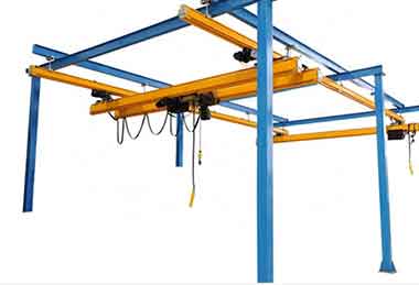 KBK single and double beam warehouse crane with hoist, as the trolley of this type is much smaller than other double girder overhead cranes, so it can be used when the distance from rail to roof is limited. It is used in mechanical processing workshops, metallurgical factories and subsidiary workshops, warehouses, material yards, and power plants for transferring, assembly, inspection maintenance, and load unload procedures due to its compact exterior dimension, low construction headroom, light dead weight, and light wheel load advantages. It can also be used to replace common double-girder overhead cranes found in light textile and food manufacturing workshops.