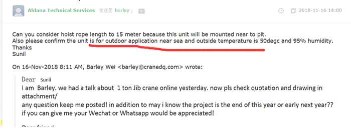 The Qatar customer inquired about the jib crane price around November 2018, and said they would come to our crane factory for inspection.