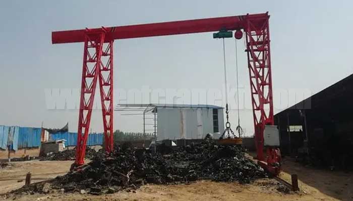 - b. Scrap Yard Gantry Crane: These gantry cranes are designed for handling scrap metal in recycling yards or steel mills. They are equipped with grabs or magnets for efficient scrap handling.